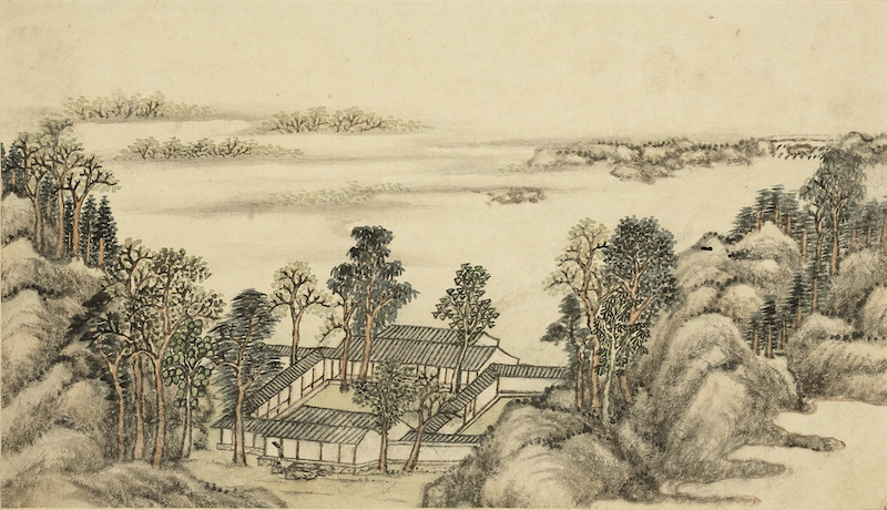 蒨园建成于乾隆十七年,是乾隆第一次南巡后,仿扬州锦春园而建。蒨园垂花门位于其西北部,进门是一个庭院,北为七开间门殿,名“清晖娱人”。殿北有台阶深入水中,是一个临水码头。清晖娱人码头遗址尚存。庭院中原置一石,名“青莲朵”,原是杭州南宋德寿宫前的摆设。乾隆皇帝第一次南巡时,曾去慕名寻访。后地方官将此石运至北京,乾隆皇帝将此石摆放于此,并赐名“青莲朵”。1927年青莲朵被运到中山公园的社稷坛西门外,后又被移至中国园林博物馆中。“青莲朵”旁还有一块乾隆时仿制的梅石碑,现在位于北京大学未名湖南岸临湖轩的西侧。