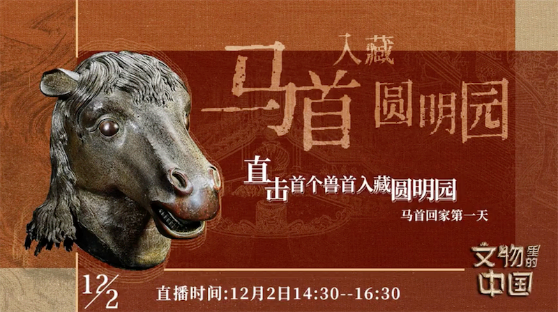 马首铜像,为清代圆明园长春园西洋楼建筑群海晏堂外十二生肖兽首喷泉中,午马喷泉的主要构件。十二生肖兽首喷泉依每日对应时辰顺序喷水,唯中天午时十二喷泉同时喷涌,景