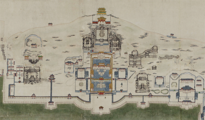 清宫廷彩绘本《香山路程图》尺寸20.5×16.1cm,为工笔重彩线装,此本为清代宫廷重要绘画机构如意馆绘制,为光绪时期皇帝与慈禧太后御制,并为御览之物。它不仅准