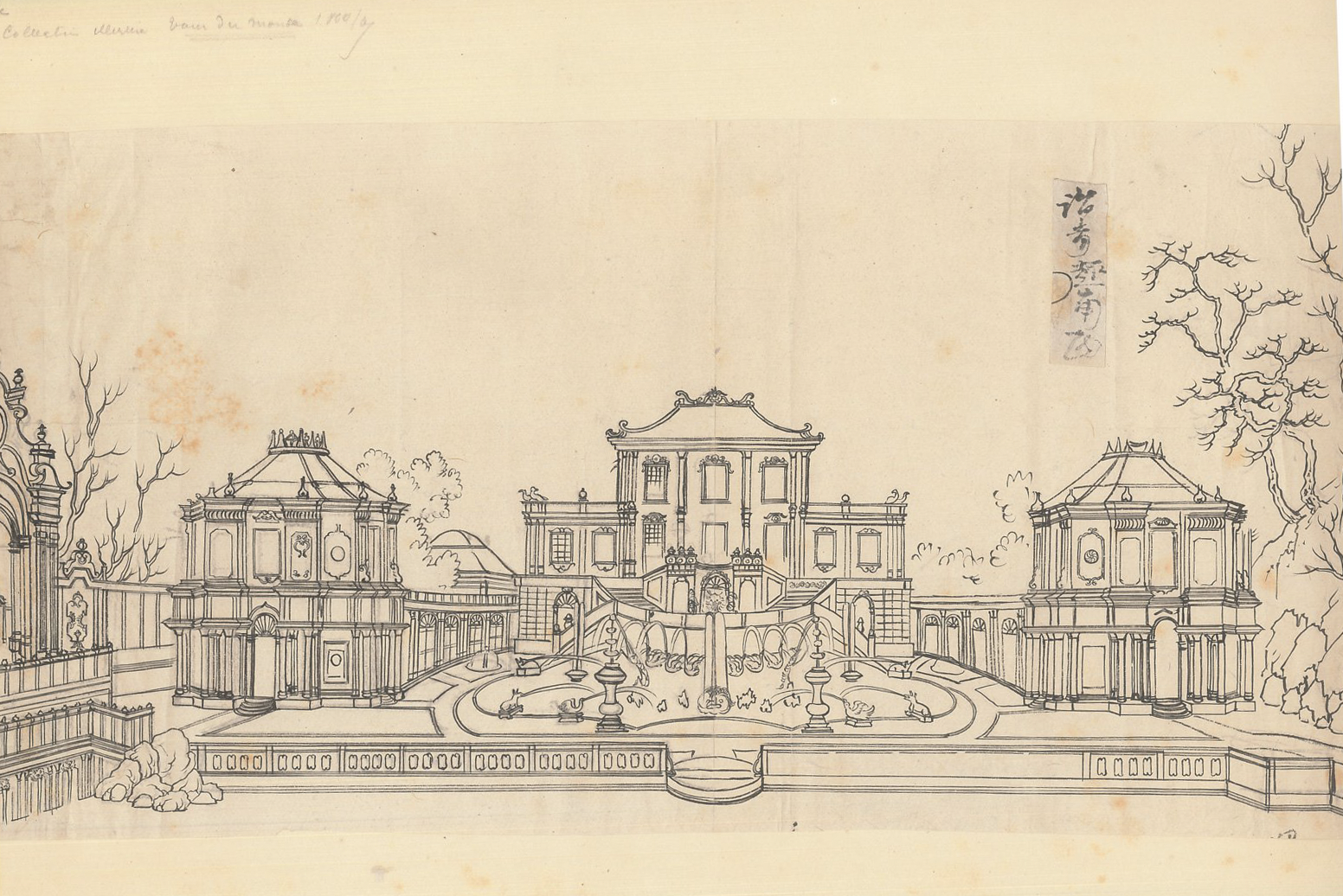 无意间在国外某网站发现的,西洋楼铜板图设计稿,绘制年代位置,疑似以铜板图为蓝本,二次制作铜板时所用。