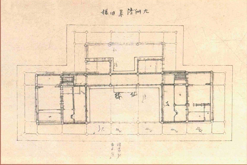 九洲清晏殿位于九洲清晏中路最后一进,为帝后寝殿。自建成以来有过重建与改建,随之室内装修也进行过几次改动。从 现存的样式雷图中,可以找到道光十六年景点失火以前的图